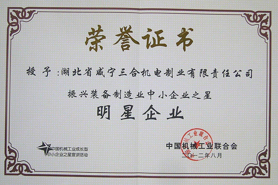 中國機械工業(yè)聯(lián)合會明星企業(yè)