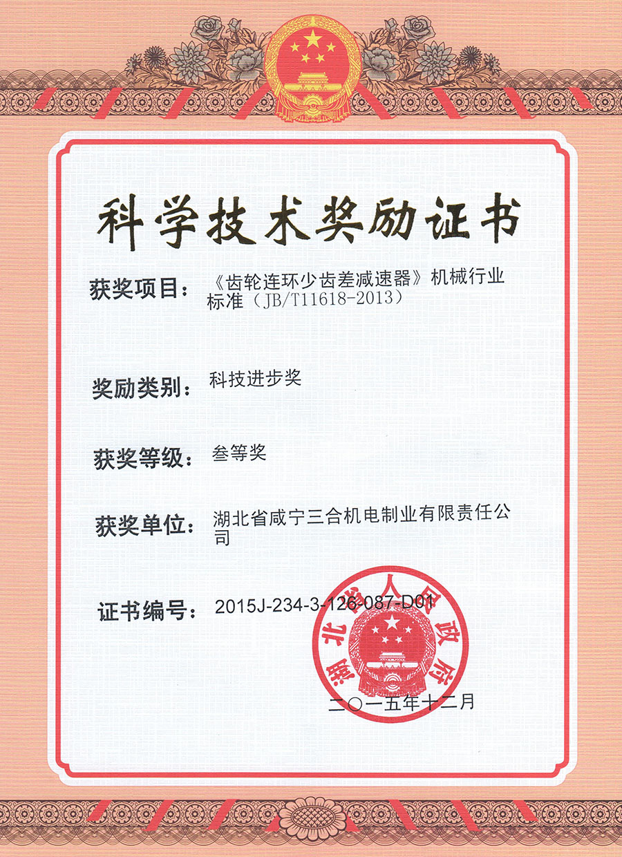 齒輪連環(huán)少齒差減速器機(jī)械行業(yè)標(biāo)準(zhǔn)湖北省科技進(jìn)步三等獎