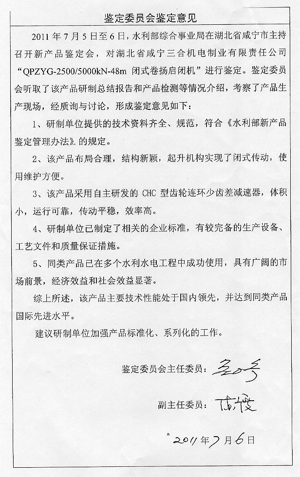 我公司研制開發(fā)的新型閉式卷揚(yáng)啟閉機(jī)產(chǎn)品通過水利部新產(chǎn)品鑒定